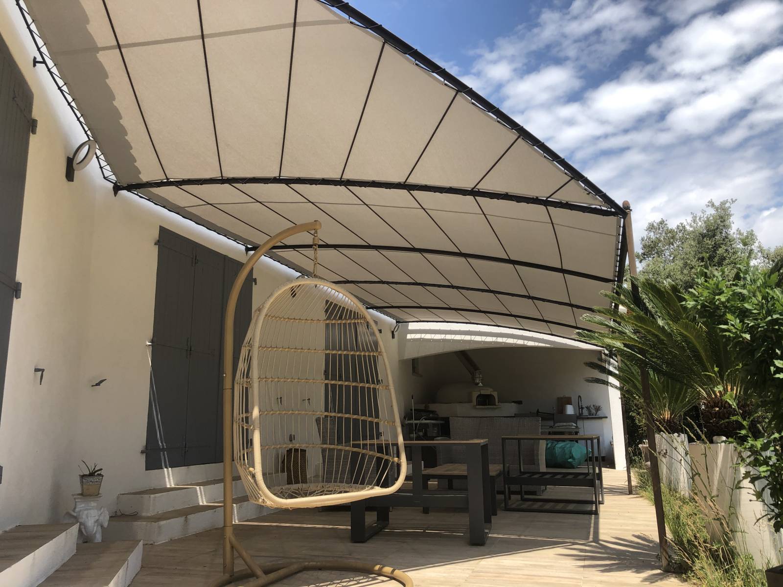 Pose d'une toile micro perforée sur une pergola à Rognes proche d'Aix en Provence